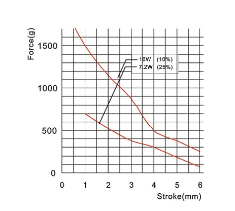9,保持式電磁鐵行程和力量的曲線圖: