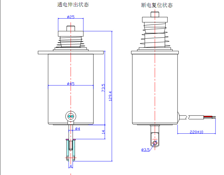 T4577圓管電磁鐵主要用于自動化設備、自動門鎖設備、安防設備、汽車配件以及醫療器械上。產品的具體介紹如下: