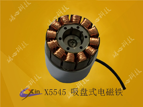 2,均勻吸小公件吸盤式電磁鐵:吸盤式電磁鐵優點是吸力大,但是缺點是力量分布不均勻,對于一些小公件的產品就沒辦法均勻的吸合。針對這個功能磁心科技幫助客戶定制了一款