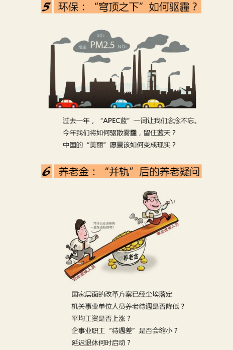 做為普通老百姓我們更多的是關注民生、溫飽和收入,在接近環境問題提升我們百姓的生活質量的同時,國家能制定經濟發展帶動百姓收入提示的好政策,我們等待兩會的進展,期望